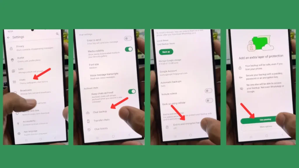 Go to WhatsApp settings, then Chats, and then Chat Backup. Turn on End-to-end encrypted backup. After that, you will see the Passkey option.
